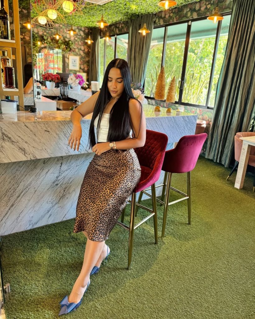 This outfit is ideal for stylish hotel lounges, bottomless-mimosa spots, or girls’ birthday brunches where you might linger at the bar afterward. The print brings instant drama, while the tank keeps it grounded and casual. For cooler days, add a cropped denim jacket or black blazer. Skip heavy statement earrings; the focus should fall on the animal print and sleek silhouette, keeping the vibe tastefully chic and classy for women of all ages.