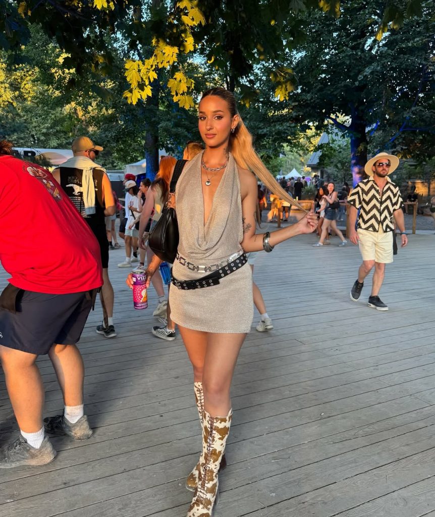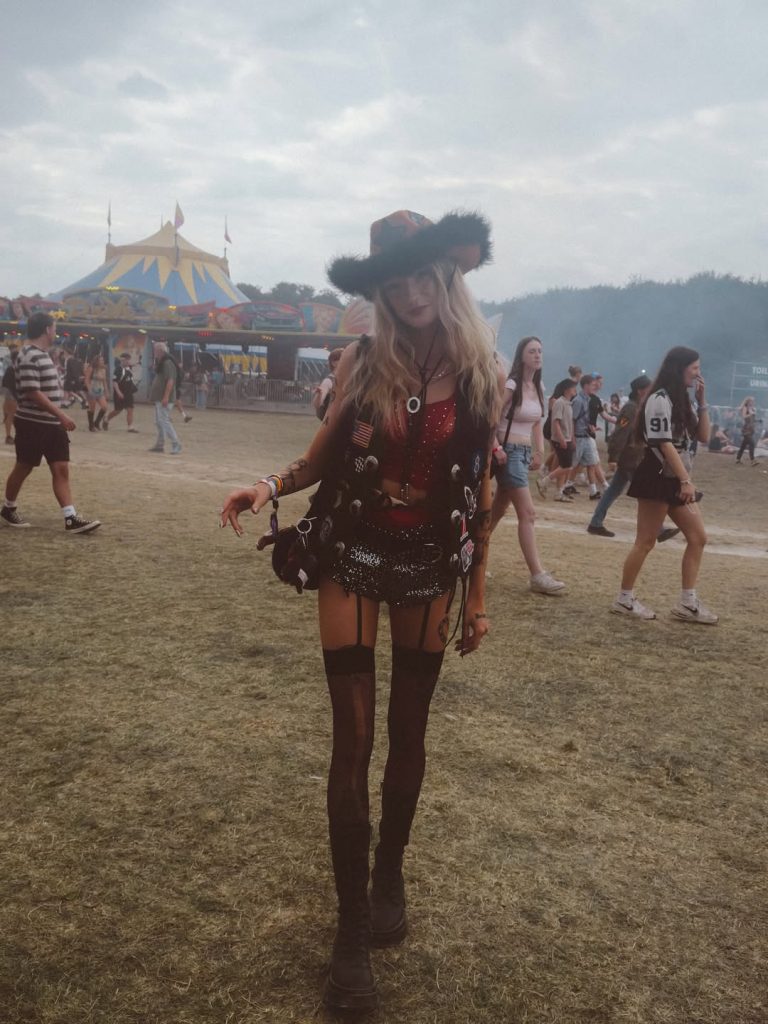 This is the look you wear when the festival itinerary swings from country music to pop headliners, and you want to feel put-together in every selfie. To personalize it, try swapping the hat ribbon for a patterned scarf or adding ankle bracelets that peek out above your boots. I’d avoid overly bright neon pieces here—the magic lies in the warm neutrals, perfect for late summer evenings or early fall days on the grass.