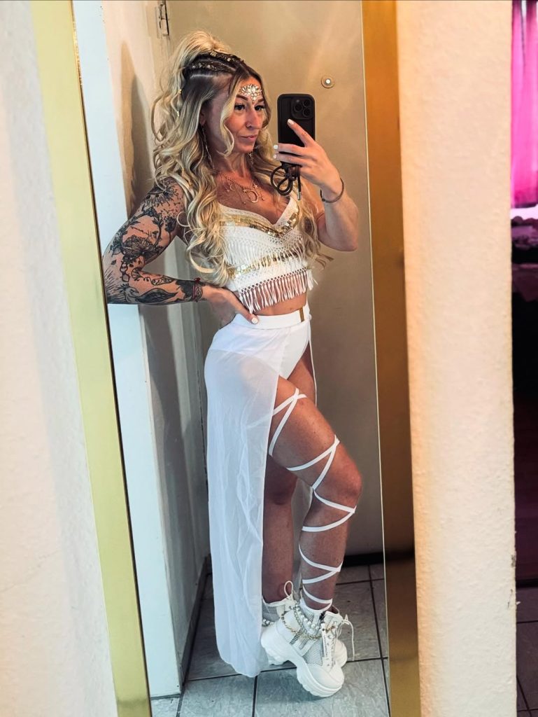 Picture this under desert lights, where country music hooks blend into synth drops and every movement sends glitter flying. For extra inspiration, add pastel eye makeup or tiny face gems that mirror the outfit’s shimmer. I’d skip dark outerwear; a sheer duster or holographic cape lets the sparkle breathe while still giving you a little warmth when night winds sweep through the grounds of your favorite rave.
