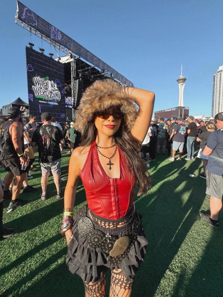Red Leather Corset and Ruffled Skirt at the Rock Fest