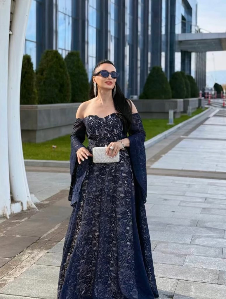 This kind of dress feels tailor-made for hotel rooftop openings or New Year’s Eve events where the lights stay low and the cameras stay busy. The strategic sheerness offers coverage while still reading daring—especially flattering for curvy women who enjoy highlighting their shape. It’s also surprisingly workable for short women once the hem is trimmed to just graze the floor. I’d skip heavy necklaces and lean into a glossy hair finish and a bold lip instead. In a style chart of evening options, navy, like this, often feels less expected than black yet just as sophisticated.