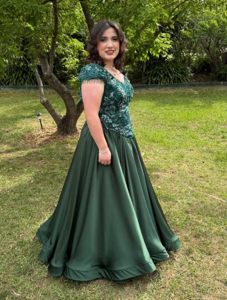 An olive green-leaning idea, emerald ball gown with ideas An embellished bodice and sweeping skirt bring pure fairytale energy to the lawn.
