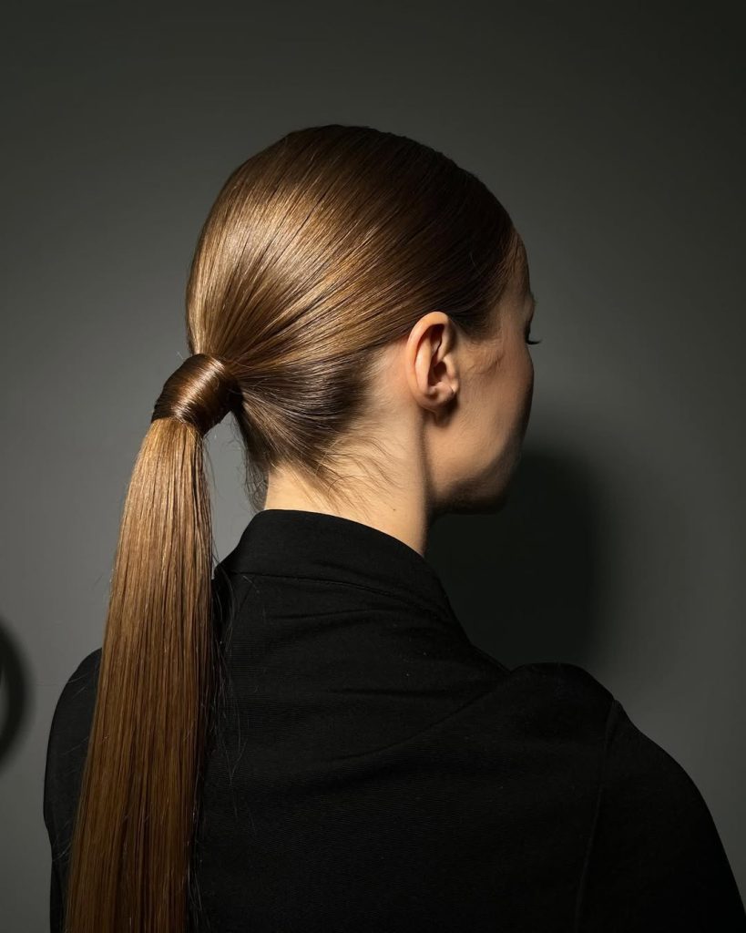 It’s a dependable, straightforward style when you want impact without complexity. Best suited for long hair, this ponytail transitions effortlessly from daytime work to evening plans.