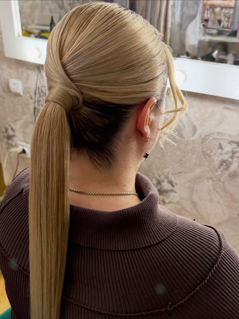 It’s one of the most practical styles for work, especially in conservative or corporate environments. Suitable for short, medium, and long hair, this ponytail is quick to achieve and easy to maintain.