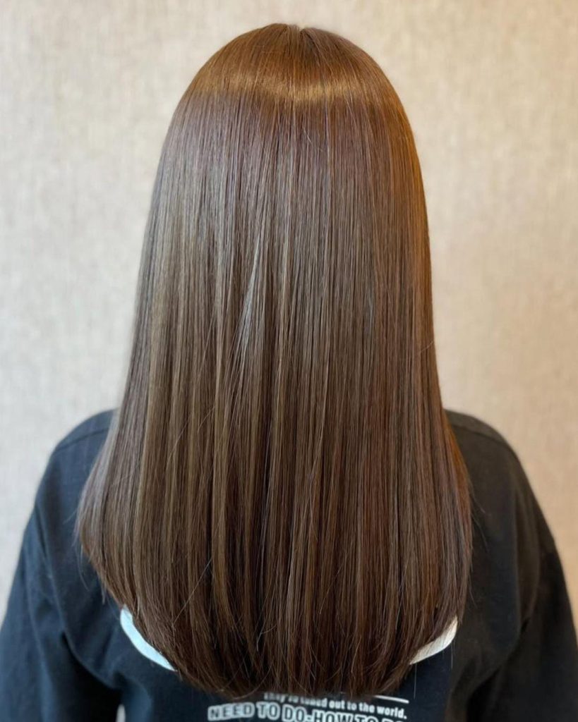 Salon notes: Ask for a single-process light brown finished with a warm, cinnamon gloss. If your hair tends to look airy at the ends, request an interior with lowlights near the nape for fullness. Prefer more dimension? Add a few micro “veil” pieces with babylights around the face for lift without disrupting the sleek vibe.