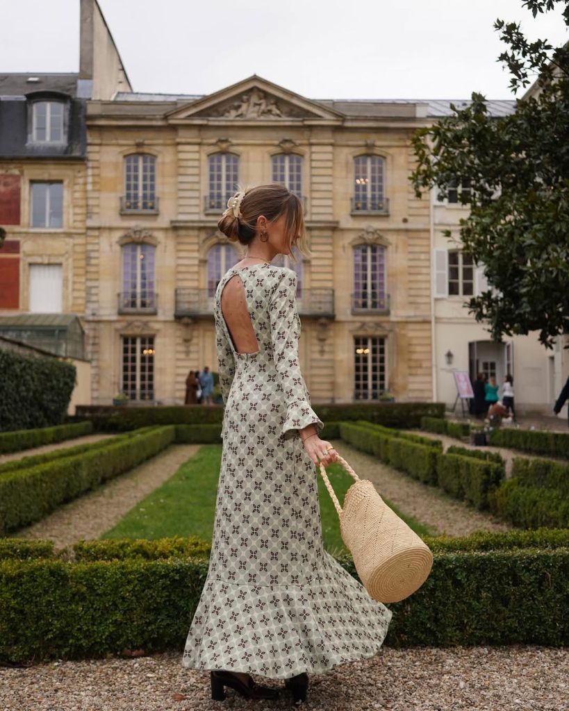 This outfit is essentially a hug in clothing form—ideal for summer trips, weekend brunches, or creative workdays when you’re dreaming of Provence. Add personality with a silk scarf in green or blue tied to the bag or worn as a headband. I’d avoid structured blazers; they’d fight the soft, romantic volume. Instead, a light cardigan or oversized denim jacket keeps it cozy when the breeze turns cool, edging the look gently toward autumn.