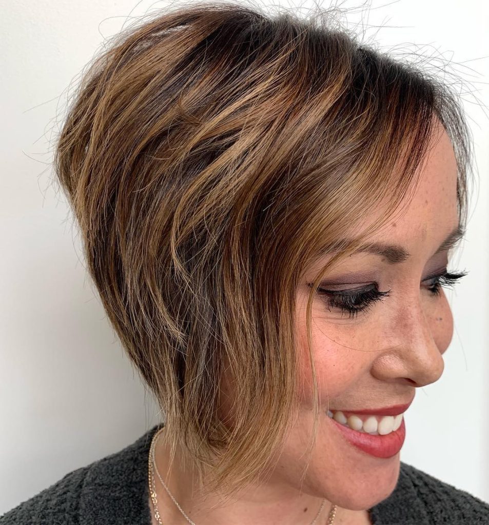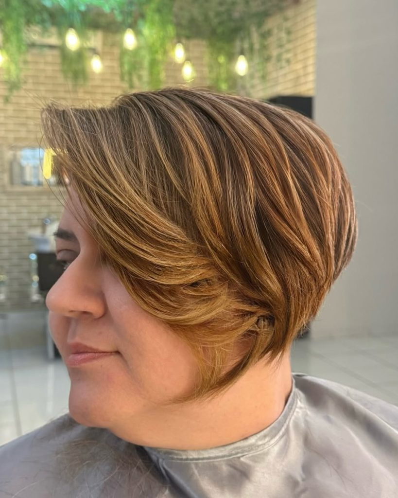 This cut works beautifully for round faces, as the asymmetry subtly elongates the profile. It’s a flattering, salon-favorite option for women seeking softness paired with a modern edge.