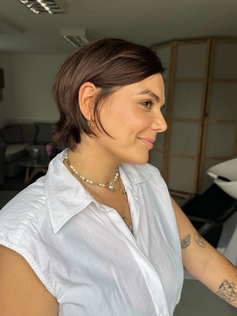 This relaxed long pixie embraces softness and ease, with lightly textured layers that fall naturally into place. It’s an ideal everyday haircut for women who want something stylish but uncomplicated.
