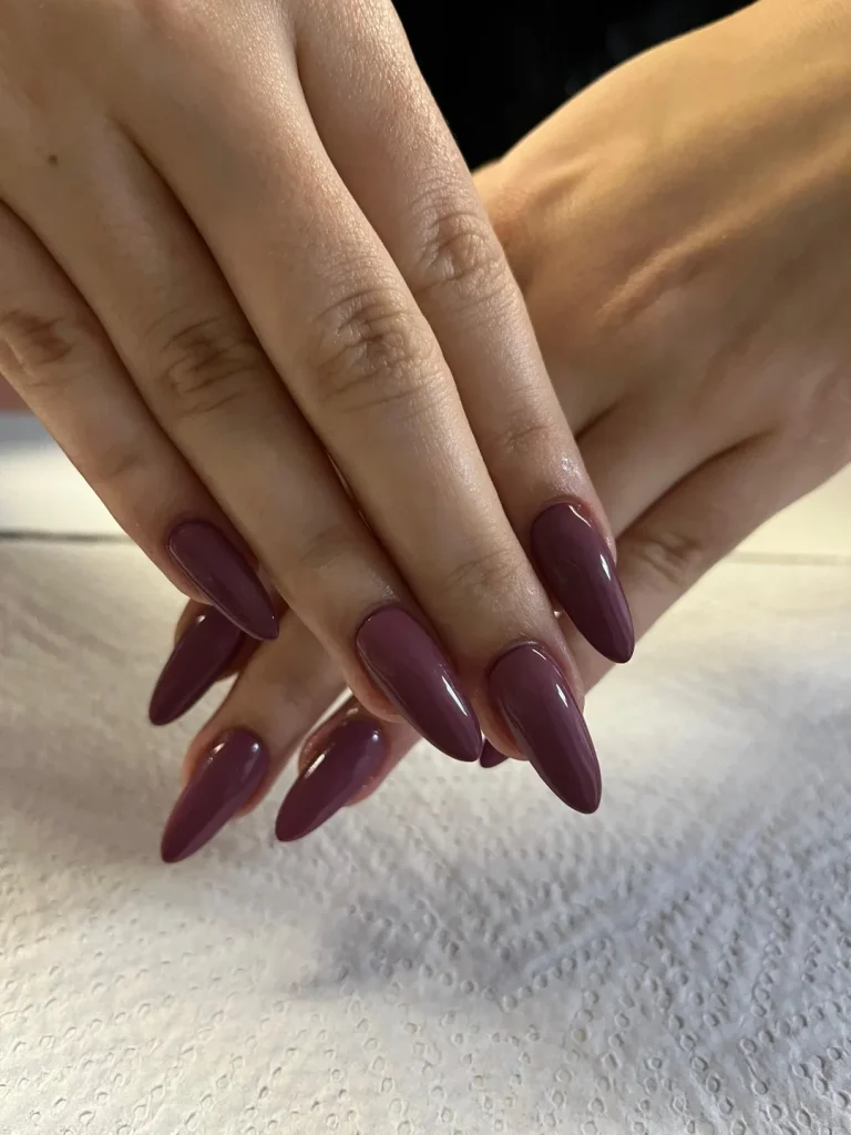 Deep wine tones bring a richer, more dramatic side to the old money aesthetic. The elongated almond shape keeps the look elegant rather than edgy, making it ideal for fall and winter wardrobes. This color pairs beautifully with camel coats, leather gloves, and gold jewelry—offering a refined alternative to classic reds. In 2026, darker shades like this feel intentional and confident, especially for women who appreciate boldness without excess.