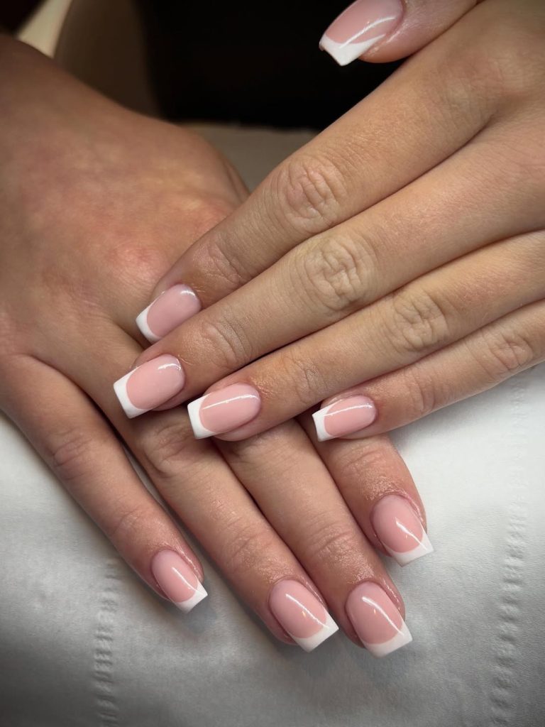 This structured French manicure leans into traditional elegance with a square silhouette that feels intentional and polished. The soft pink base and clean white tips create a timeless balance, making it one of the most versatile old money nail ideas available. It’s especially appealing during winter, when structured tailoring and clean lines dominate wardrobes. This manicure mirrors the philosophy often discussed on Who What Wear: when in doubt, return to classics done exceptionally well.