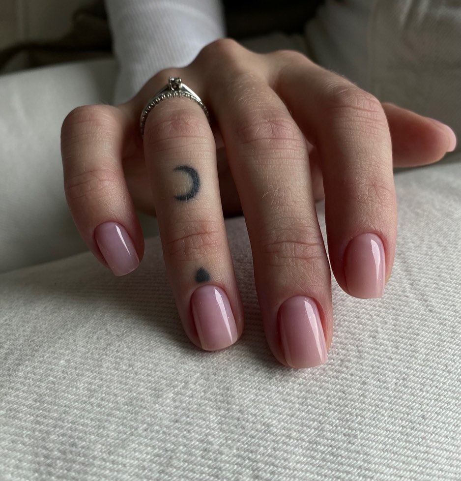 This manicure features a muted dusty rose shade with a smooth, high-gloss finish that highlights the natural shape of short nails. The color feels refined and balanced—neither too cool nor too warm—making it a versatile choice for different seasons and skin tones. What truly sets this look apart are the minimal finger tattoos: a delicate crescent moon and a small dot that add subtle personality without overpowering the clean design. It’s a perfect example of how the old money aesthetic in 2026 can blend understated elegance with personal expression, staying polished, modern, and quietly luxurious. This nail design works beautifully for everyday wear, professional settings, or relaxed weekends when a well-groomed yet effortless look is key.