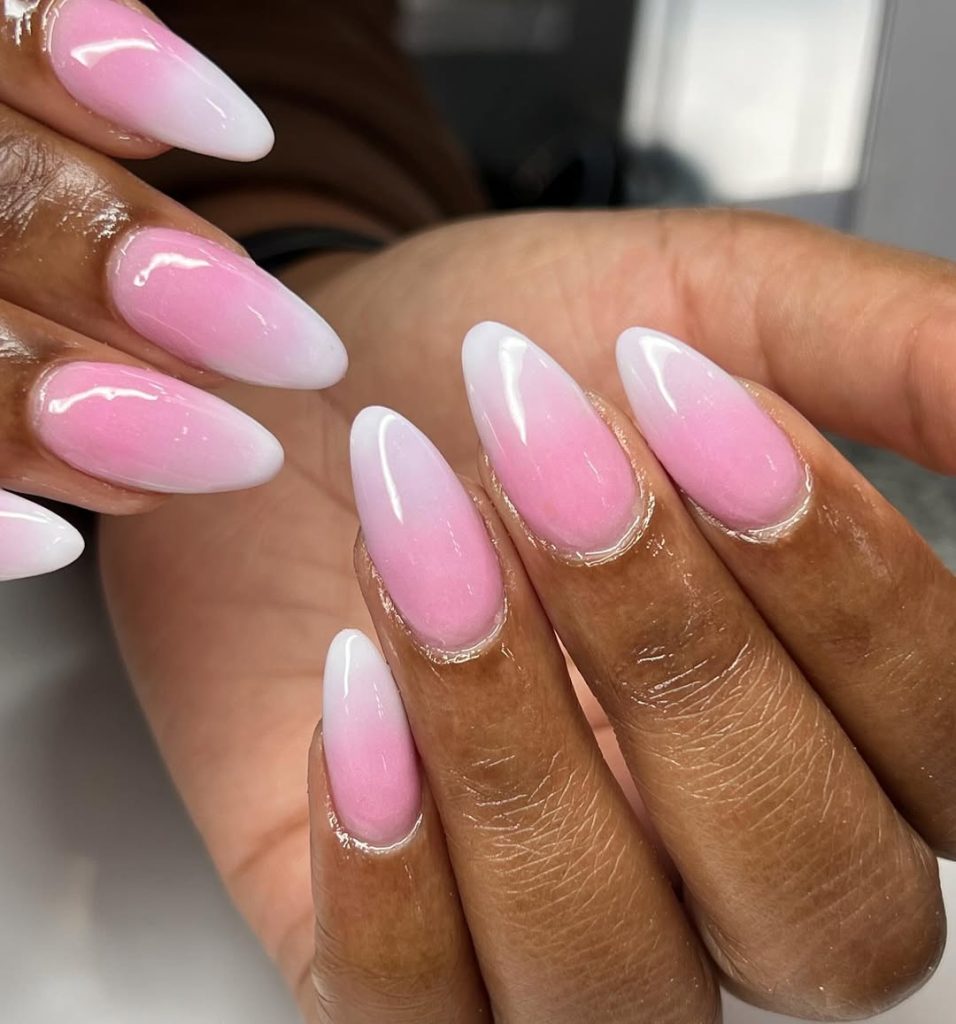 Timeless never looked so fresh. A sheer baby pink melts into soft white on an almond silhouette—office-friendly, bridal-approved, and universally flattering. This is the set I recommend when clients DM me for “something pretty but not extra.”