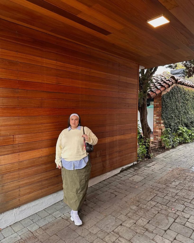 A perfect outfit like this layered outfit sparkles for the fall days for running errands, grabbing a coffee with a friend, or wandering a novel area. A patterned headscarf or large statement earrings add pizazz. Avoid overly bright bags that scatter the tranquil color palette; their liveliness takes away from the soft contrasts. Consider this an upgraded OOTD casual curvy uniform—real-life comfy is a must, but the fit should also look nice for the photos.