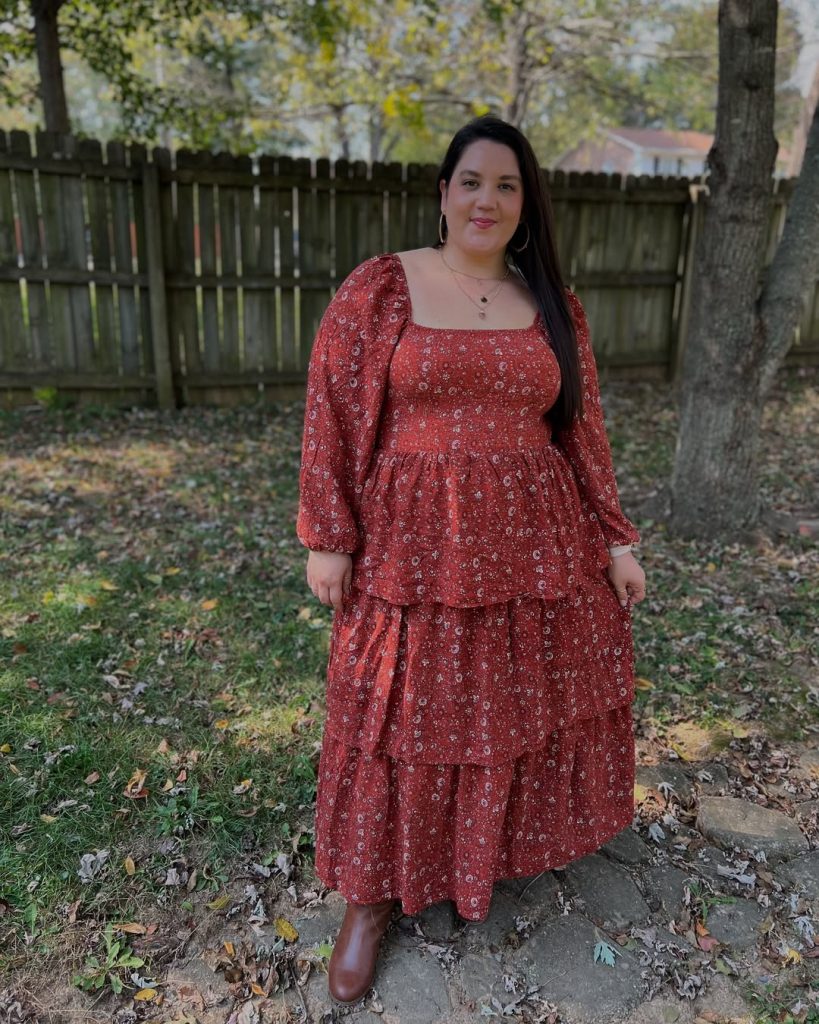 3. Tiered Rust Dress for Autumn Romance