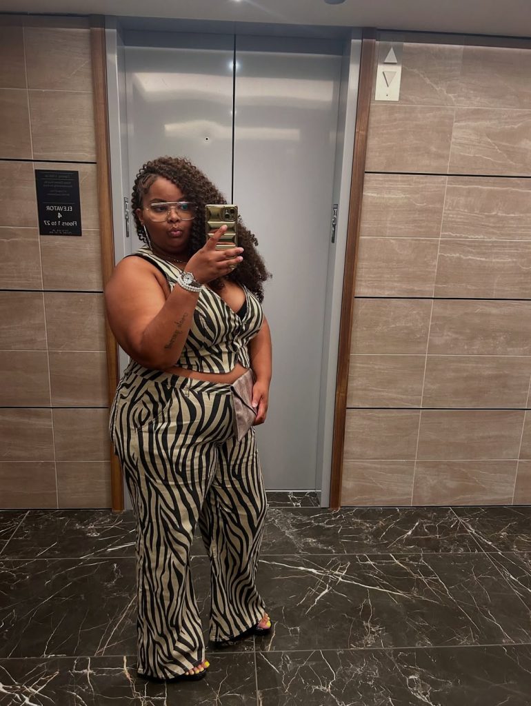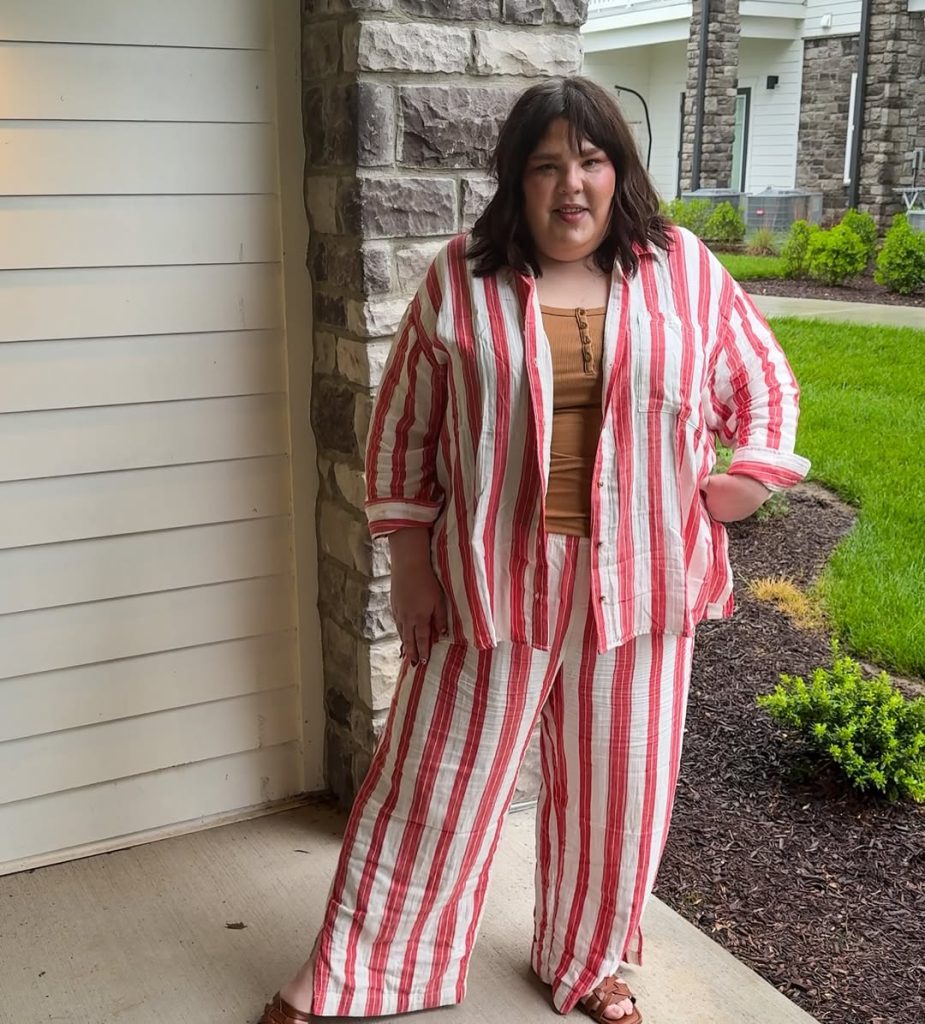 Wear this to hotel bars, birthday dinners, or any summer night out plan where you want to stand out the moment elevator doors open. A black blazer can add structure if you prefer a little more coverage while keeping the print visible. Avoid busy necklaces that compete with the neckline; let the stripes and confident silhouette do the heavy lifting. This outfit exemplifies boldness in plus-size outfit ideas for 2026, serving as a reminder that maximalism is inclusive of every body type.