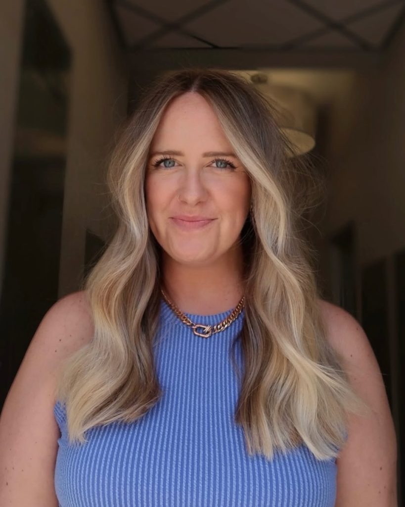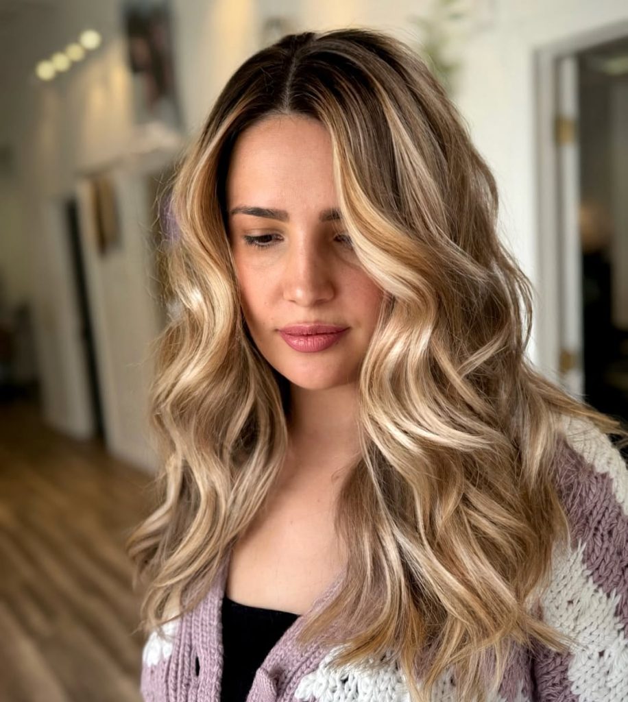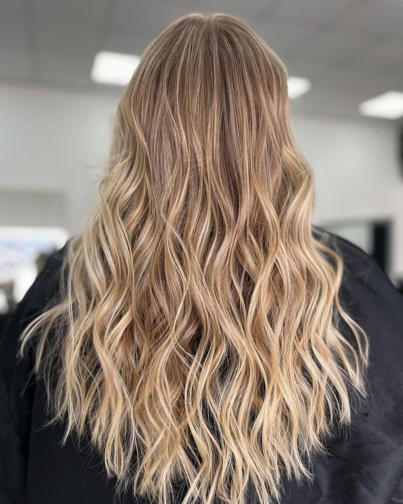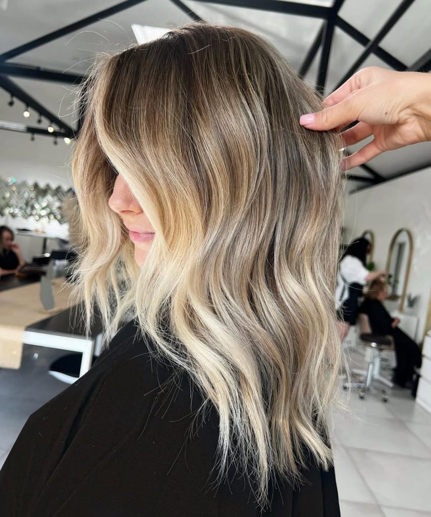 Here we see a classic spring refresh: lighter lengths paired with a softly shadowed root. The contrast is gentle, allowing the blonde to feel airy and fluid rather than dramatic. The waves are relaxed and slightly irregular, which enhances the natural feel of the Balayage. This is the kind of blonde that photographs beautifully in daylight and feels especially right for spring—fresh, approachable, and easy to live with.