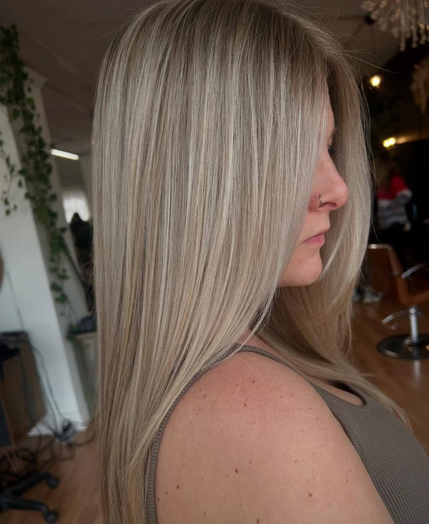 This style showcases how Cool blondes are becoming more refined in Spring 2026. The tone is even and controlled, with subtle brightness concentrated through the mid-lengths rather than stark face-framing pieces. The finish is smooth and glossy, emphasizing hair health and precision coloring. This blonde works especially well for women who prefer cleaner silhouettes and minimal styling, as the Color itself becomes the statement. It’s understated, elegant, and extremely modern.