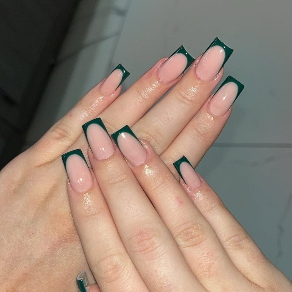 Deep Green Square French Tips for a Polished Statement