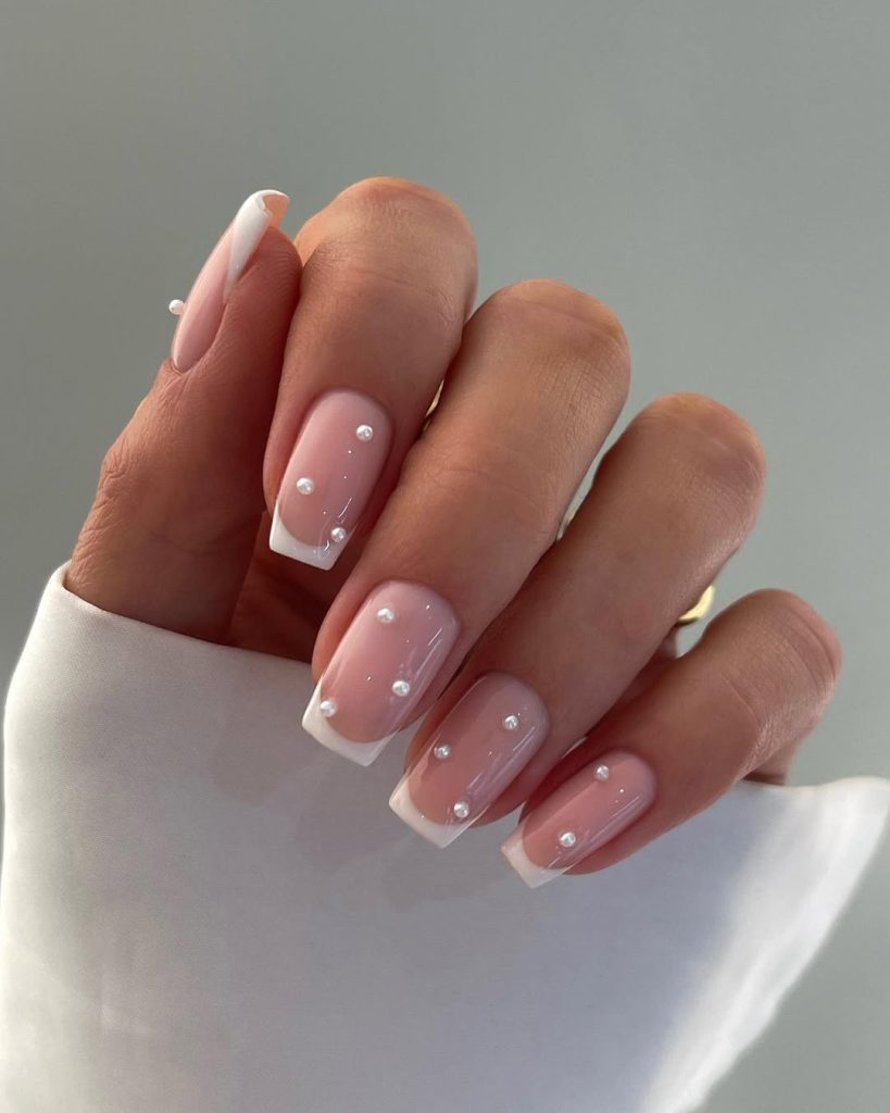 Classic White Square Pink French With Pearl Accents