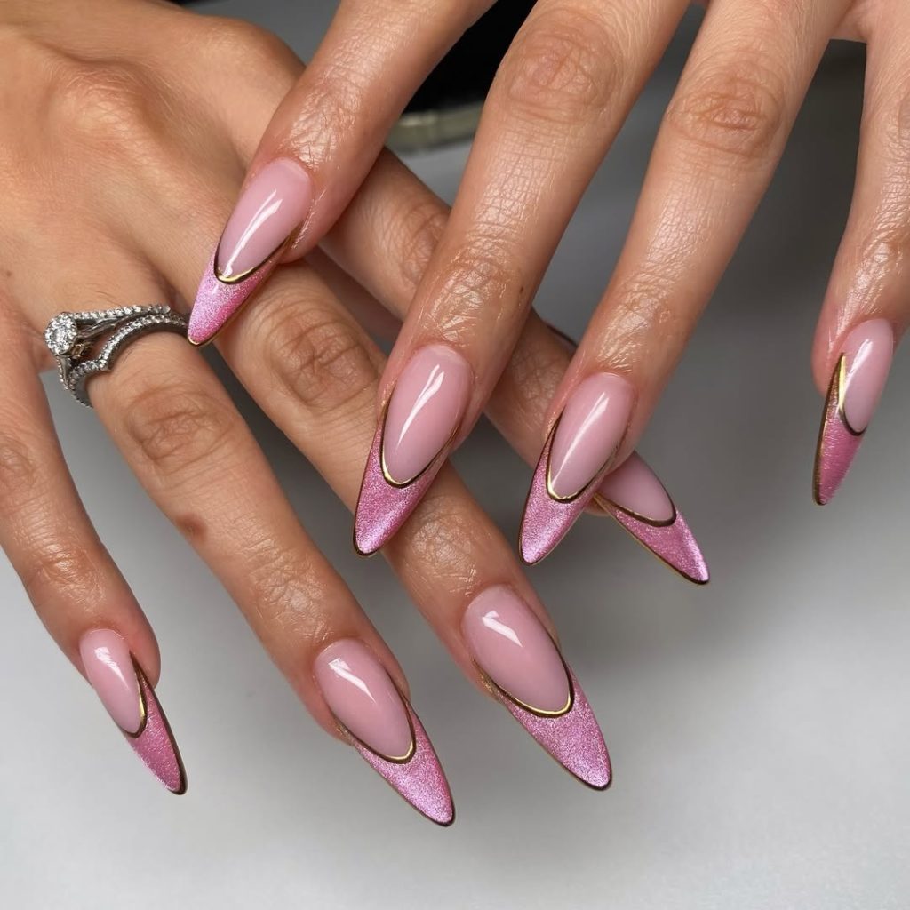 Pink and Gold Stiletto French Tips for Elevated Glam