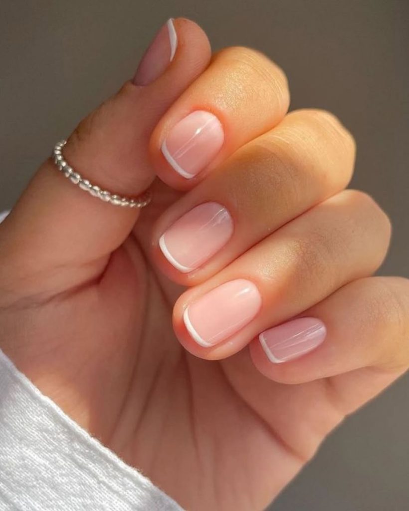 Clean, restrained, and quietly elegant, this short French manicure proves that minimal never goes out of style. The barely-there pink base paired with soft white tips works beautifully on a square shape, making it ideal for women who prefer low-maintenance nails. This look aligns perfectly with Spring 2026 trends favoring natural finishes and subtle definition. It’s the kind of manicure beauty editors often recommend for travel, busy schedules, or anyone who wants timeless inspo.