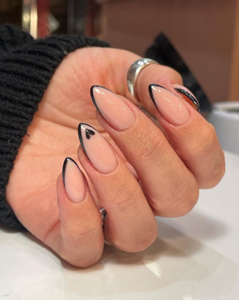 Black French Tips With a Modern Almond Edge
