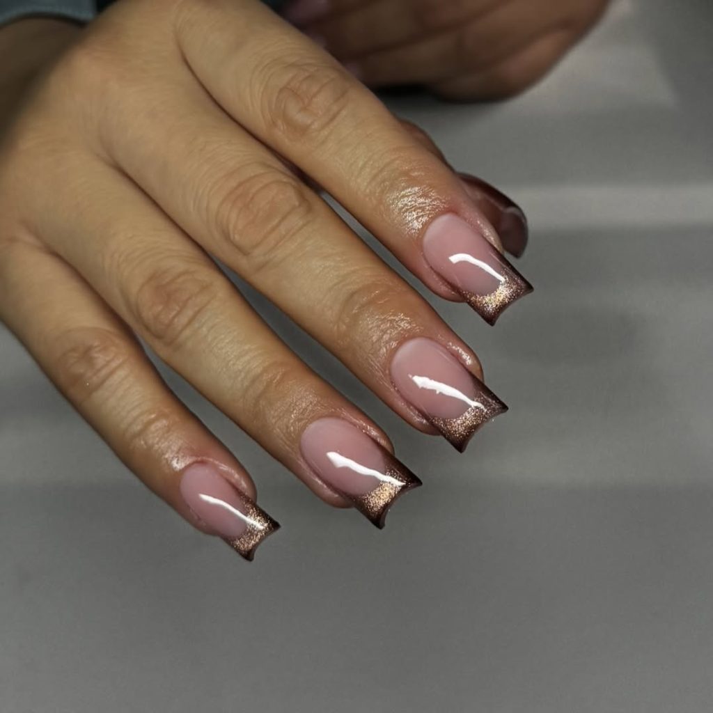 Bronze Glitter French Tips for Soft Glam