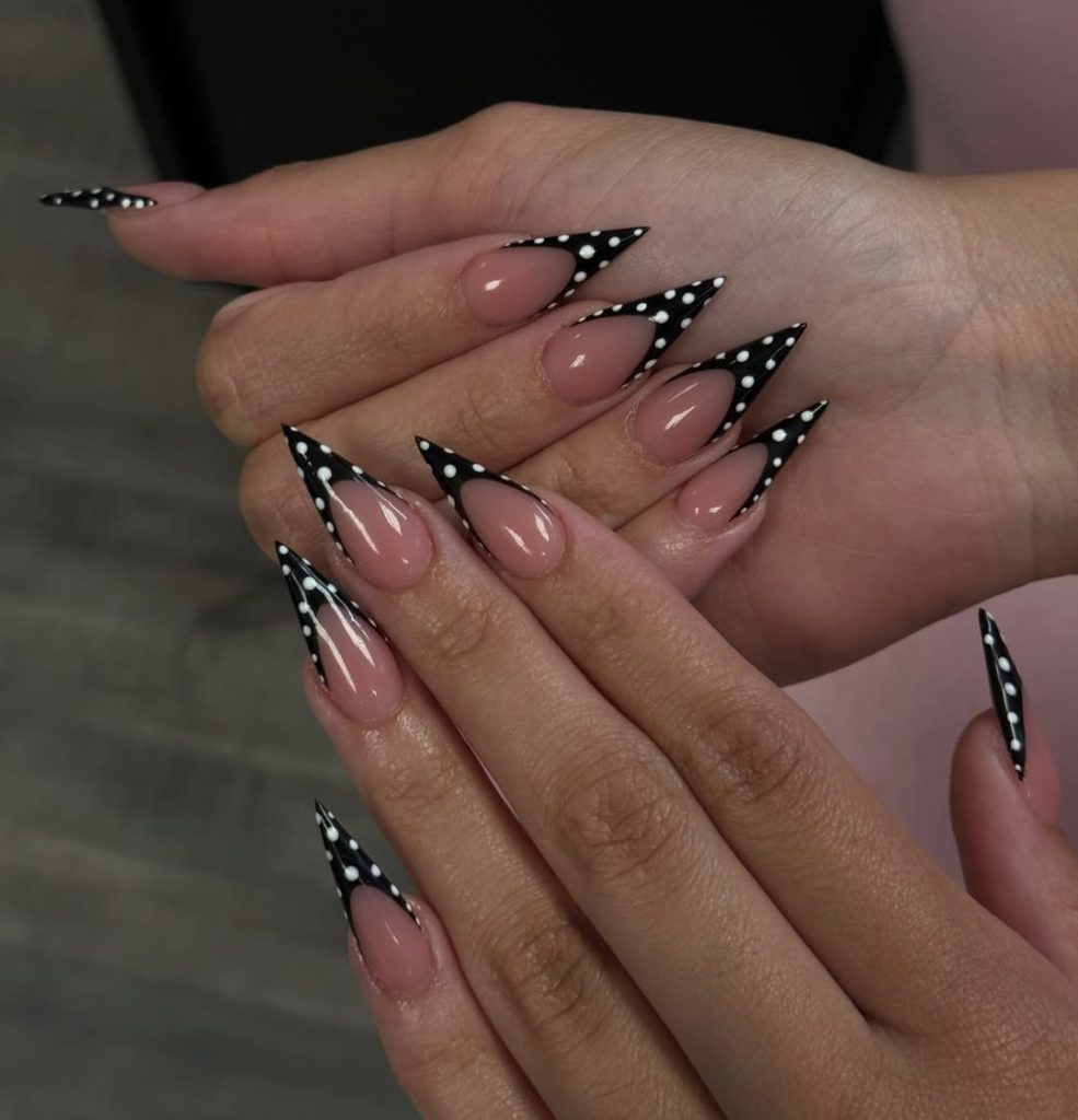 Black Polka Dot Stiletto French Tips
