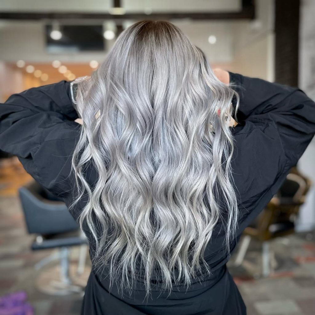 Icy Silver “Mermaid” Waves with a Soft Shadow Root