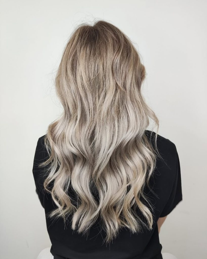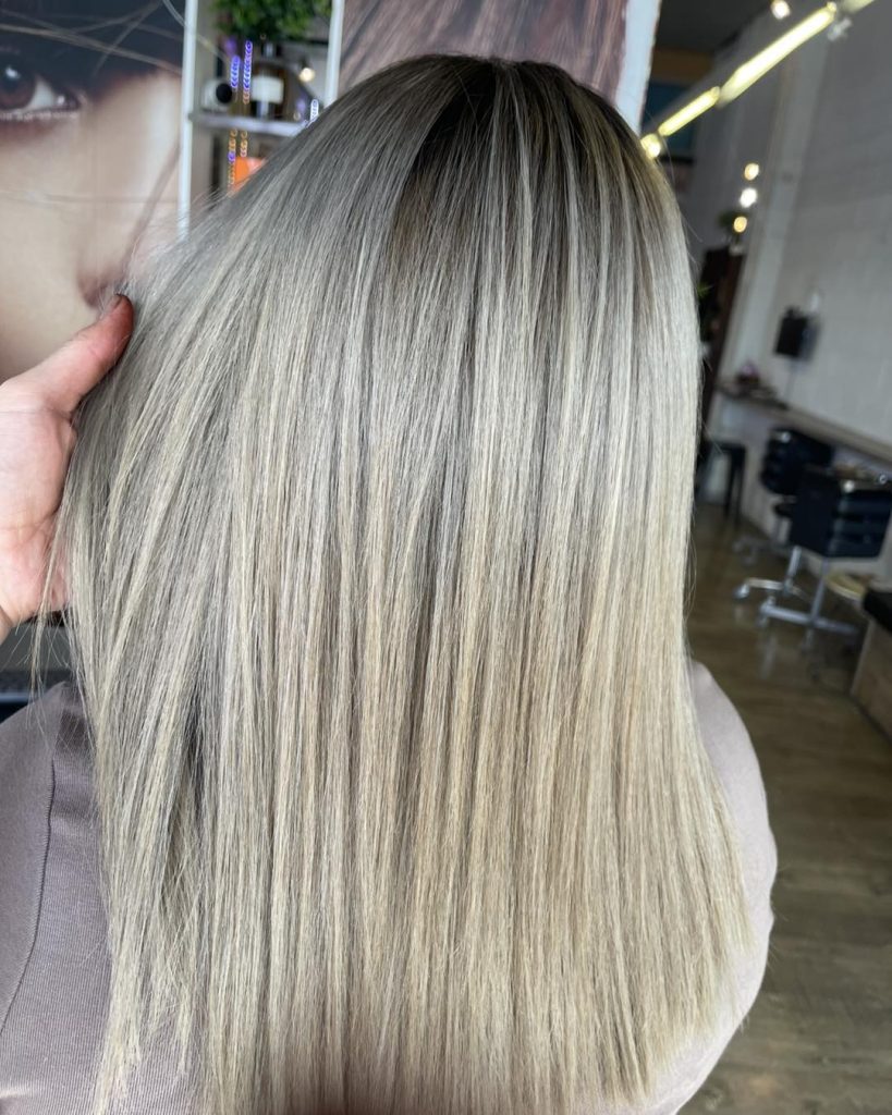 Icy ash blonde lengths with soft shadowed roots