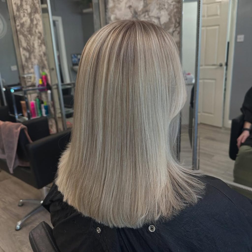 This tone sits in that sweet spot where you can go weeks without a panic touch-up. It’s cool without being stark, and the subtle mix of ash and greyed-beige tones makes it feel sophisticated. If your wardrobe is already full of neutrals and denim, this shade will fit right in. If you’re more of a colorful dresser, it’s the perfect “quiet” hair color that lets your outfits do the talking.