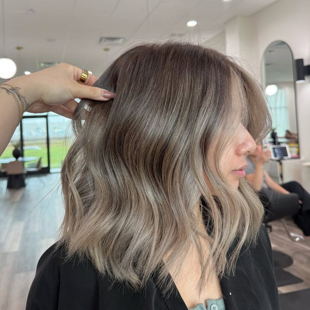 If you’re asking for this in the chair, say you want balayage that’s smoky and soft, not stripey—plus a root smudge to keep the contrast chic instead of harsh. The result is a medium-toned ash that flatters a wide range of skin tones because it doesn’t go too icy or too beige.