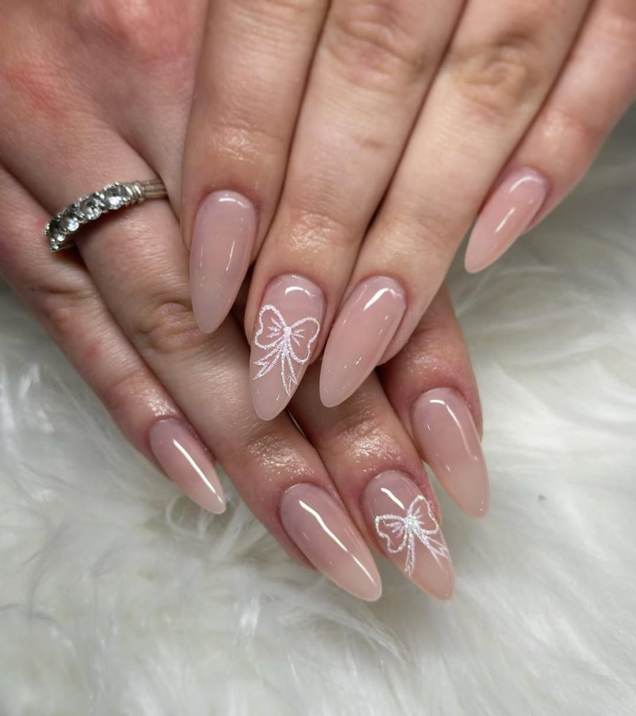 Pro tip: Apply a very fine layer of glitter top coat only over the bow nail for depth without weight. If you’re doing it yourself with Acrylic , outline the bow in gel first, cure, then fill—like Betina Goldstein often recommends for precision line work.