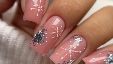 Sheer nude with micro iridescent bows offers a “quiet luxury” take on festive nails. It’s the manicure you can wear to a board meeting at 10 and a cocktail hour at 7.