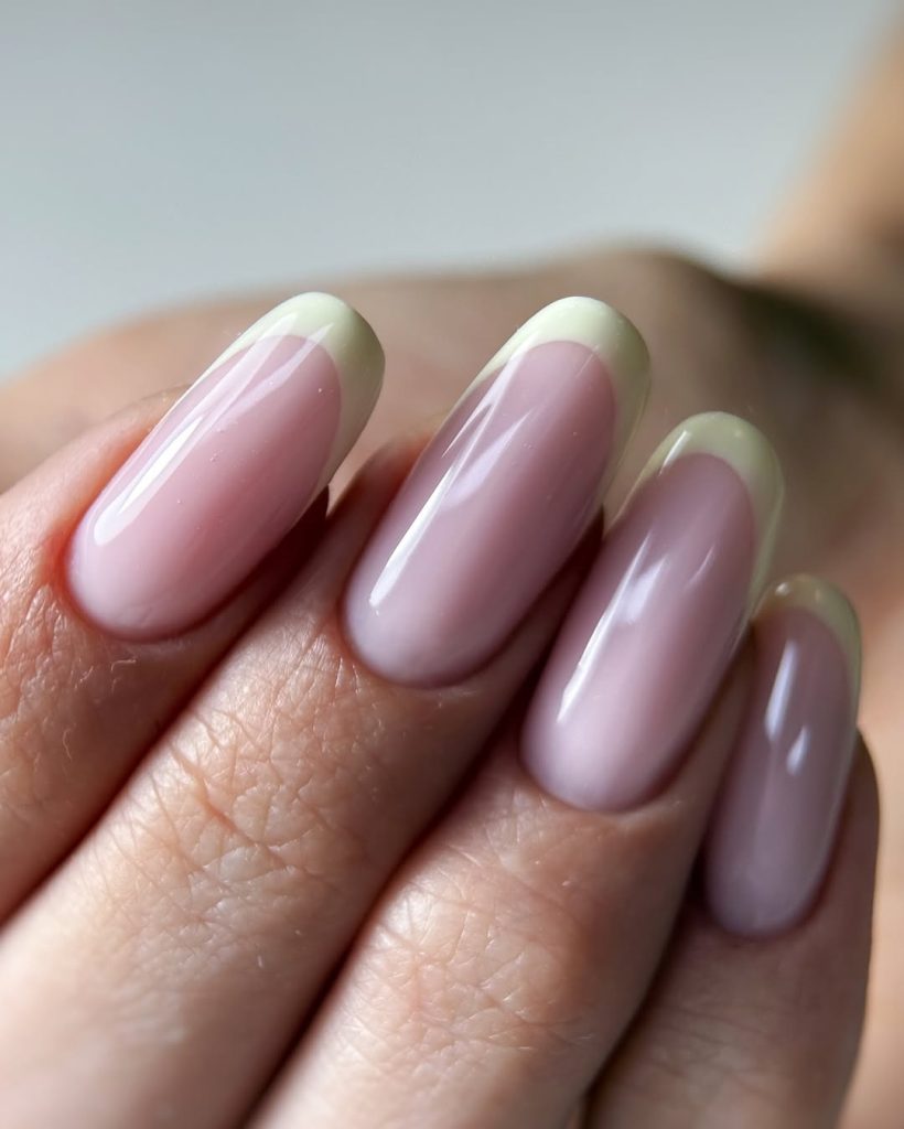 A milky pink base paired with a creamy, off-white French tip creates a softer alternative to the traditional stark white French. The almond shape enhances the understated elegance, making this manicure a perfect example of quiet luxury. This look reflects a growing preference for 2026 ideas. Perfect for women who adore classic styles with a modern twist.