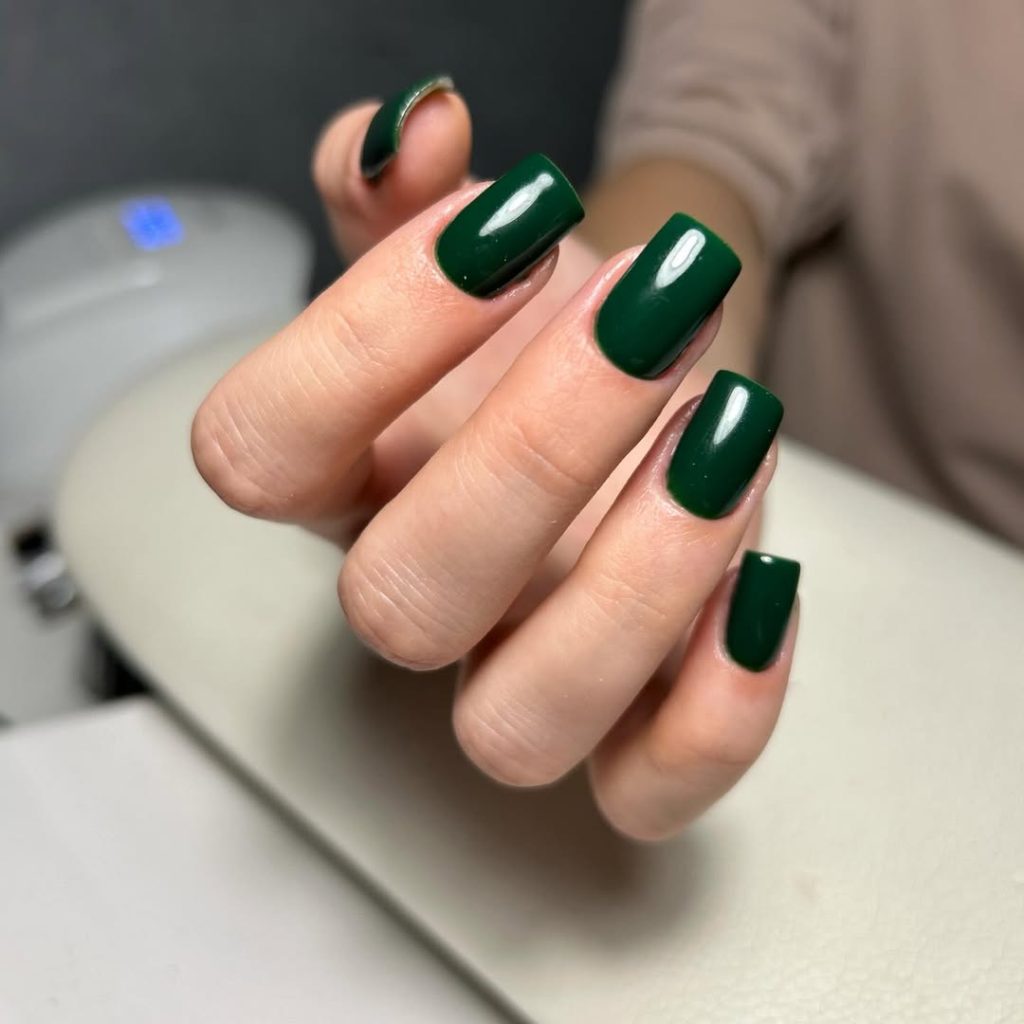 21) Classic Emerald Green Square Nails
