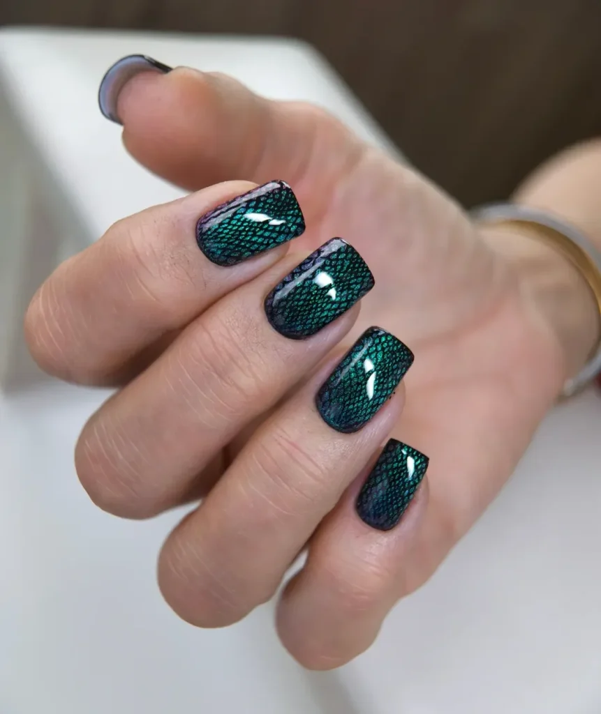 13) Teal Snake-Texture Nails
