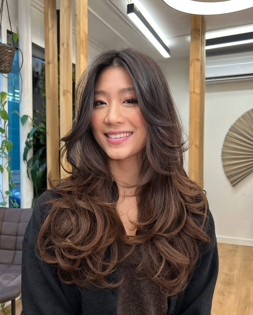 This is the modern blowout-wave dream: cascading face-framing pieces, a lifted crown, and ends that curve with movement rather than hanging heavy. The signature here is the butterfly cut concept—shorter, swoopy layers around the face plus longer length behind—creating that “two haircuts in one” illusion. For wavy hair, it’s a cheat code: you get body without sacrificing length.