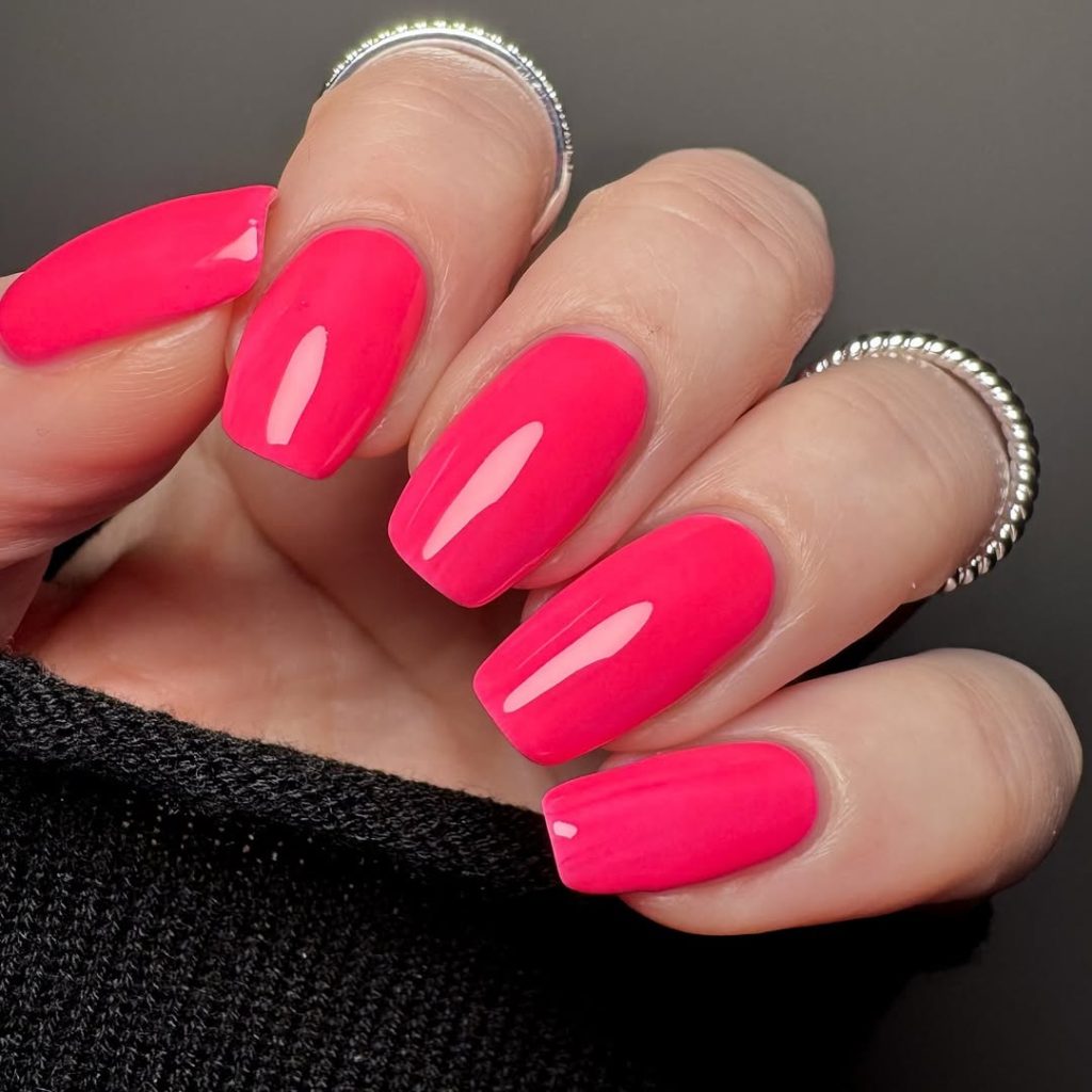 Sometimes the most fashion-forward move is the most Simple . A single ultra-saturated hot-pink gel, shaped into a short-to-medium Almond shape , reads polished at work and flirty on weekends. The no-nonsense finish is chip-resistant and perfect for maintenance-lite routines.