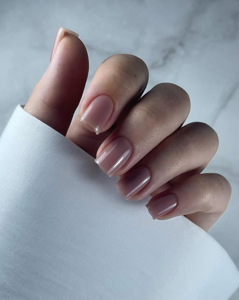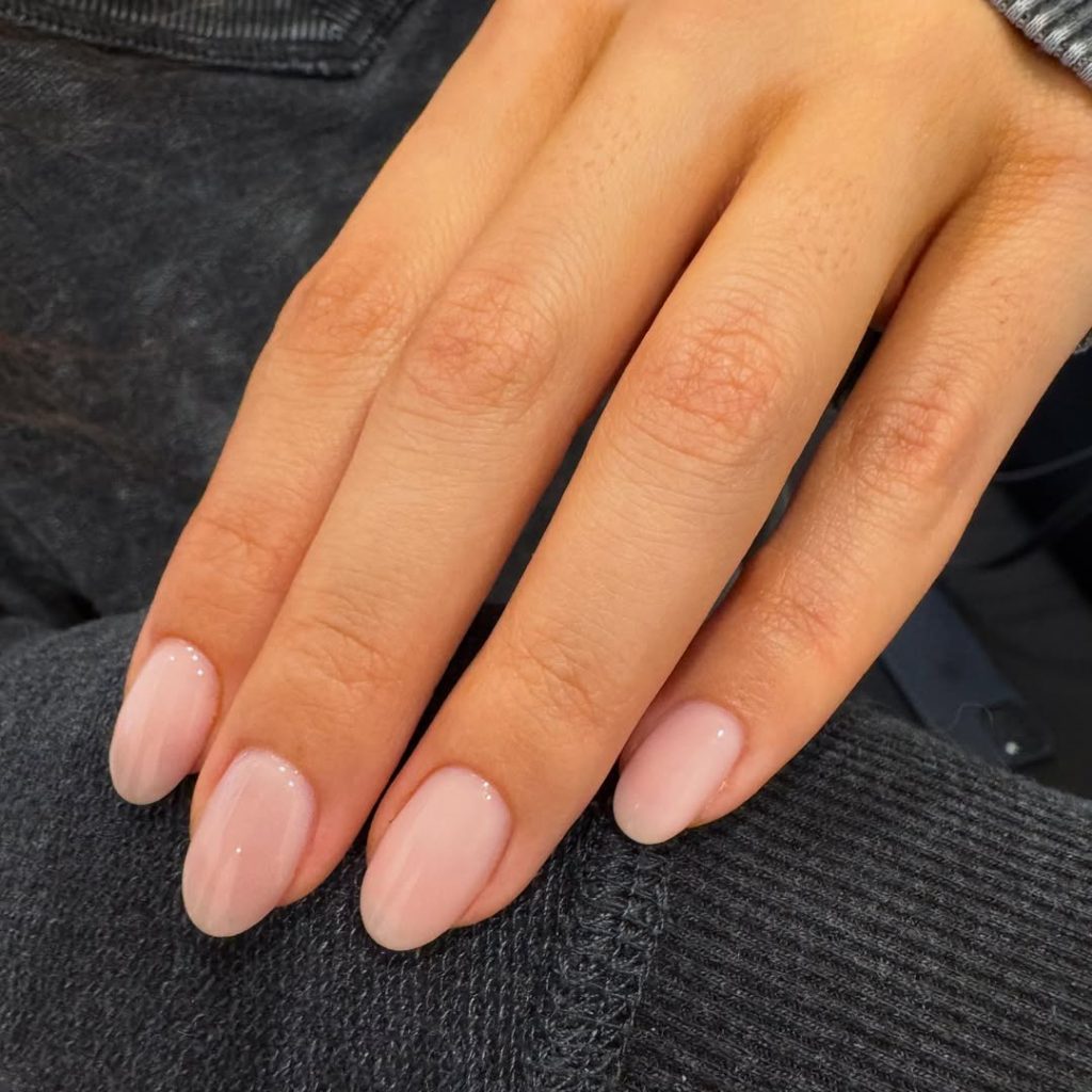 Here, the nails are deliberately short, softly rounded at the edges, with a barely-there nude polish that looks like your nails, only healthier. The color has a jelly effect: translucent, slightly milky, and just enough warmth to counteract any redness in the nail bed. It’s the kind of manicure you see on “clean girl” influencers and beauty editors who swear by effortless design rather than loud Colors .