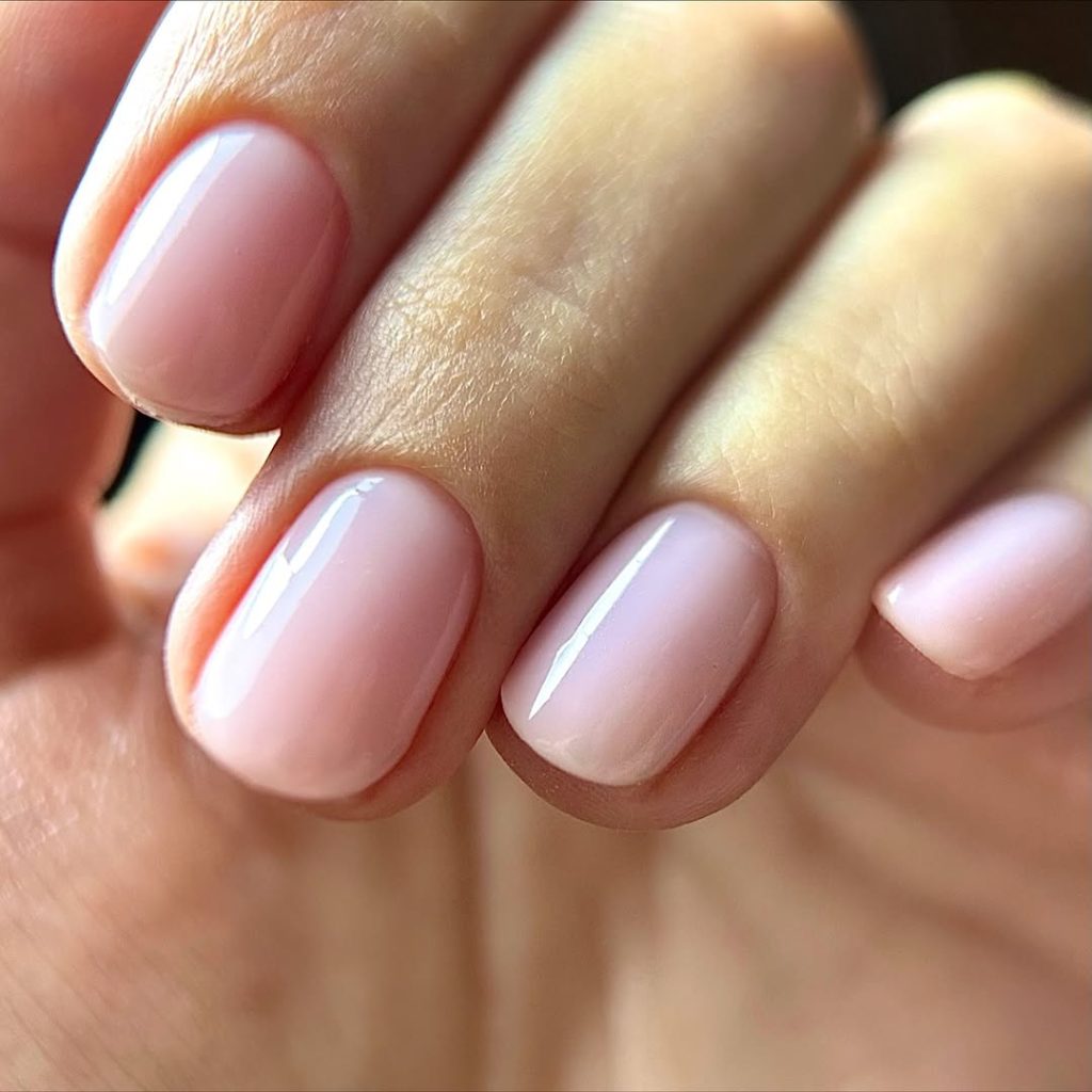 Here we have a textbook “polished professional” manicure. The nails are cut to a practical short length and filed into a modern square silhouette. A sheer baby pink gel is layered until it becomes softly opaque, giving that plush, cushiony look you see on celebrity manicurists’ feeds. There’s no glitter, no accents—just clean, simple perfection that fits seamlessly into every part of your life.