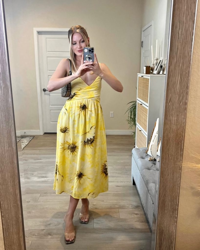 Color takes center stage in Picnic outfits 2026 trends, and this dress proves it. Yellow photographs beautifully against green grass and wooden picnic tables, which is probably why stylists at Who What Wear keep forecasting it as a warm-weather staple. To ground the look, you might add a light denim jacket or cropped cardigan in cream. Avoid heavy, dark accessories—they pull focus from the dress’s glow. This is a great choice for a picnic that might turn into dinner, especially if you’re celebrating a birthday or special occasion.
