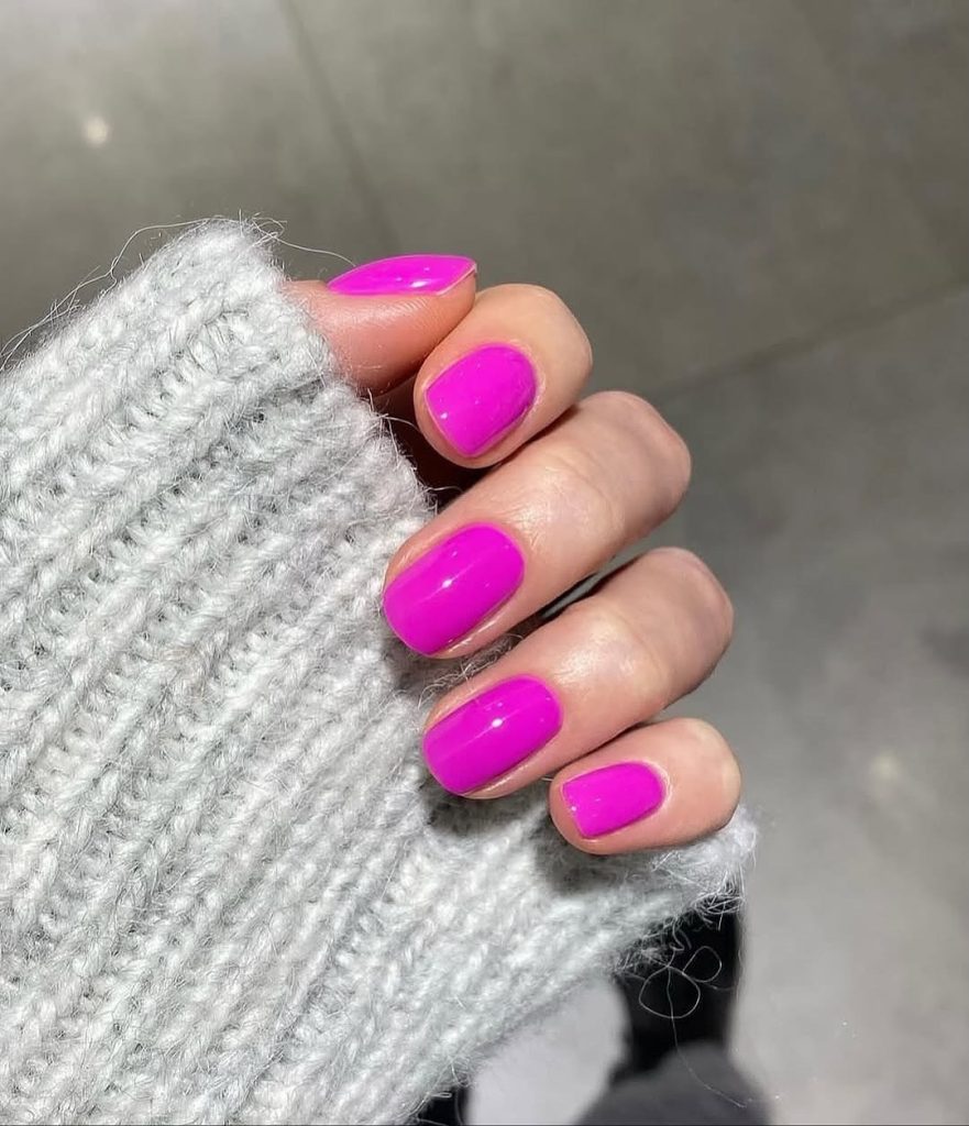 High-voltage magenta turns short coffins into a mood booster you can see from a crosswalk. The finish is ultra-glossy, the shape stays neat and wearable, and the color reads fashion-editor bold without rhinestones or charms—pure color as the designs move. It’s a perfect summer switch when neutrals feel sleepy. Pair with a grey ribbed knit or white tee to let the hue pop; silver hoops and fresh pink balm keep it modern. Ask for two thin coats and a glassy top so the coffin edge remains crisp.
