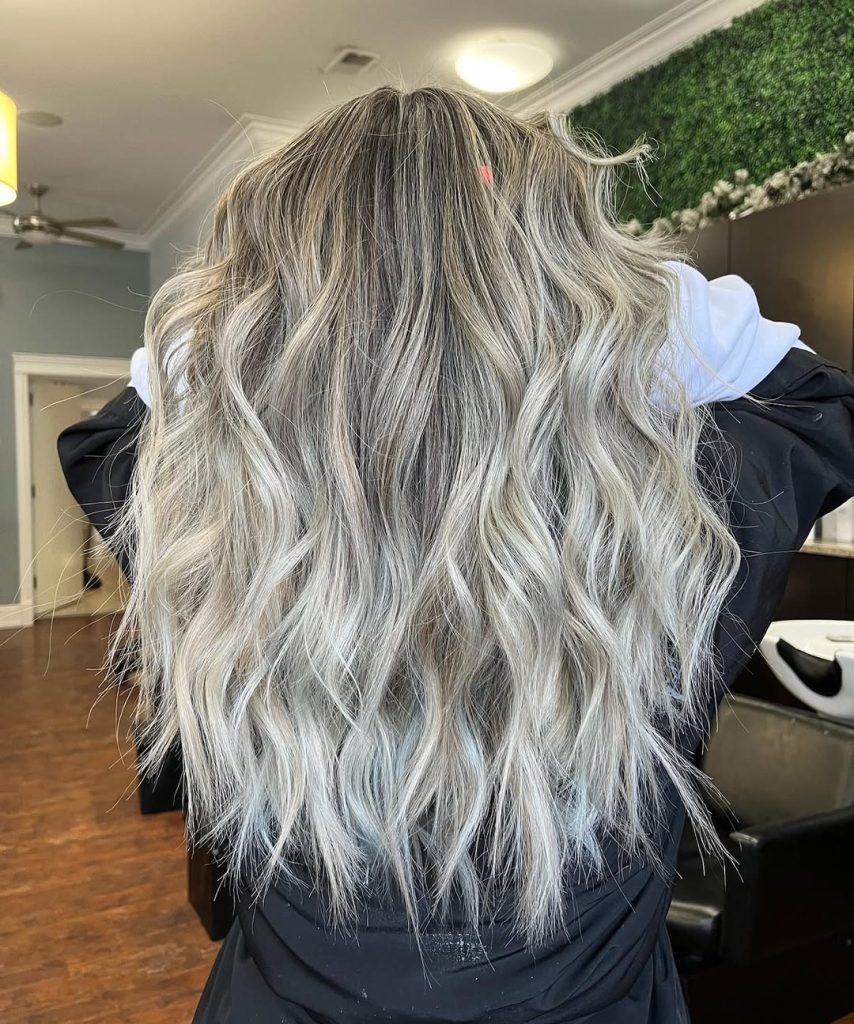 This cool-toned melt is giving us serious balayage trends of 2026 vibes. A rich brunette root morphs gently into muted, smoky blonde locks for a cool modern color melt. The finish is fresh but under control—never brassy, never flat.