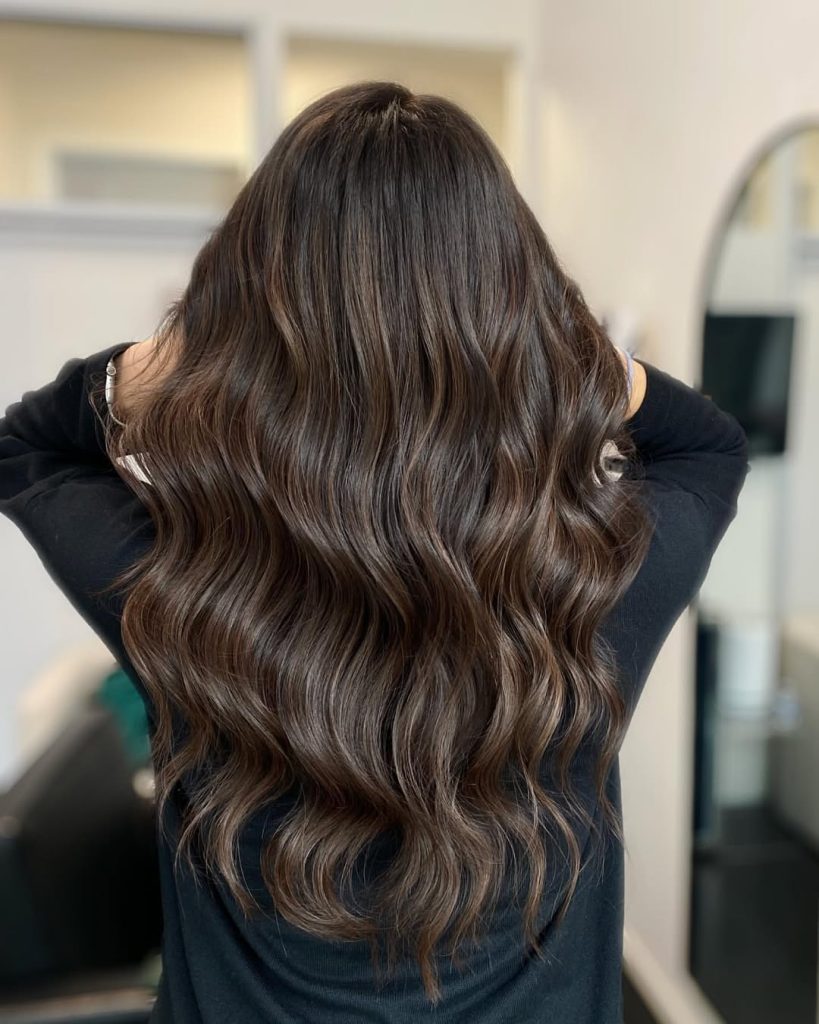 This shade is perfect for brunettes looking for some dimension without the heat. It looks especially good on women who prefer monochrome approaches, silver accessories, and elegance in moderation. The style shows how balayage keeps developing into something more delicate and nuanced.