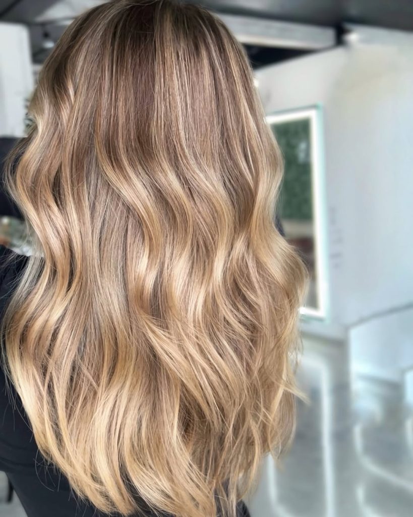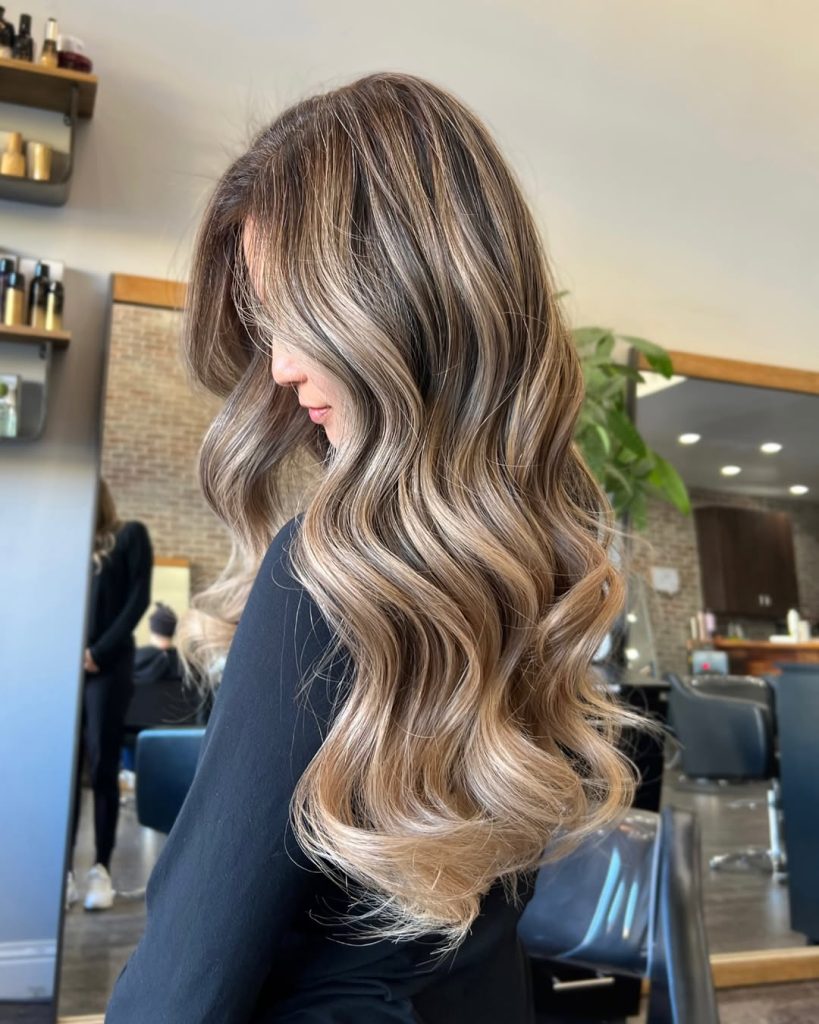 This tone connects brunette and blonde so perfectly; it’s a wonderful choice for women who are exploring the lighter side of hair color yet want to retain depth. The heat pairs beautifully with spring wardrobes—linen, soft knits, and lighter neutrals.