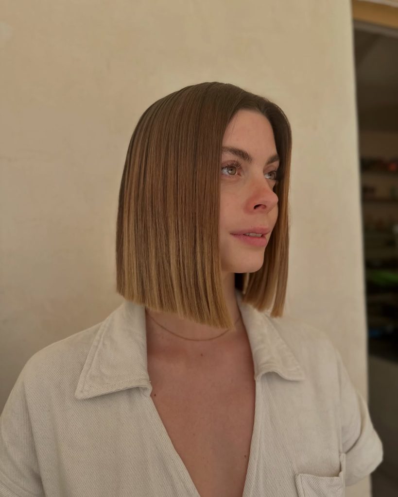 Precision lovers, meet your muse. This tidy, jaw-grazing cut is snipped perfectly Straight with a whisper of angled forward flow so the front edges read sharp and contemporary. The sunlit blonde melts softly through the shaft, proving blunt doesn’t have to mean severe.