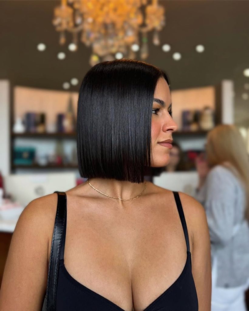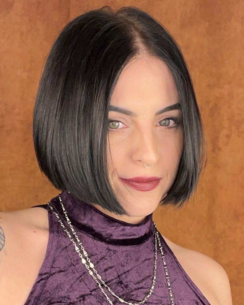 Short, sharp, and impossibly chic—the French micro bob sits right at the jaw with a whisper of bevel. The center part and glassy finish lean straight, while a quiet forward angle frames the mouth and shows off cheekbones. Keep trims strict every six to eight weeks; micro lengths lose their line fast. A silk pillowcase is non-negotiable if you love that midnight shine.