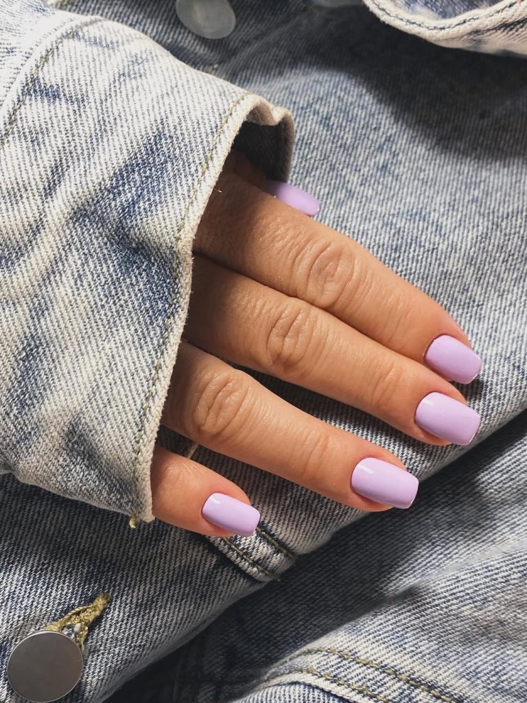 A creamy pastel purple on tidy, rounded short squares—clean, polished, and office-friendly for 2026. This is the ultimate simple manicure when you want versatility without art. It pairs beautifully with crisp shirting or athleisure; for weekends, match a light-lilac pedi on toes to keep the look cohesive. Ask your tech for a rubber base to prevent chipping on naturally flexible nails.