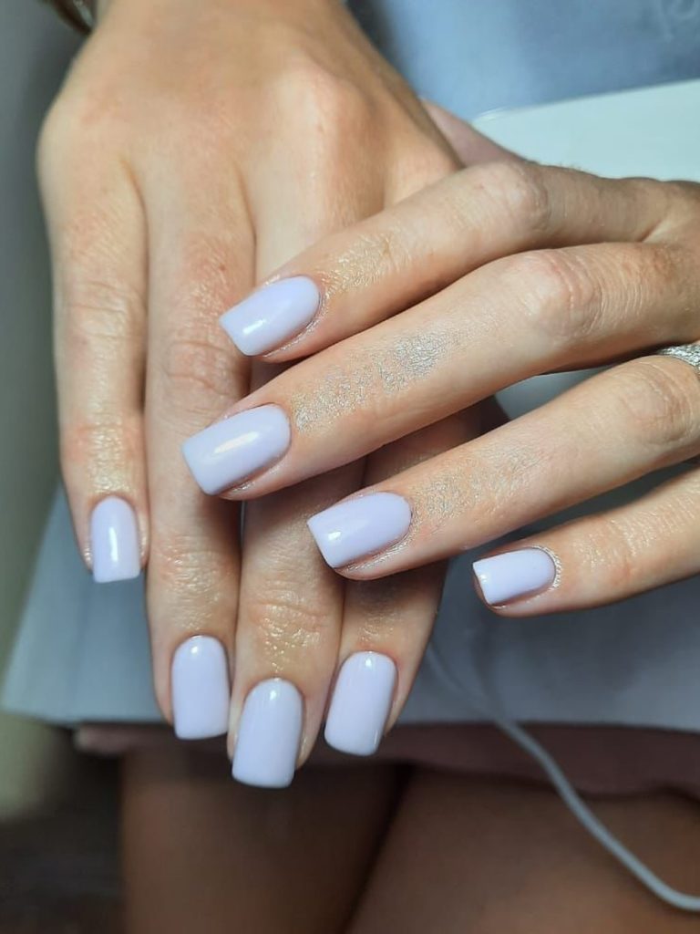 Neat square tips glazed in a soft, milky pastel purple. The tidy short length reads refined at work and relaxed on weekends—very “capsule wardrobe” for nails in 2026. Keep it simple with two thin coats and a glassy top. Style with a white tee, structured blazer, and straight-leg denim; mirror the cool tone with silver hoops. For a cohesive finish, choose a matching lilac on toes during summer sandal season.